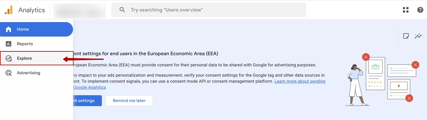 Go to the Explore tab in GA4.