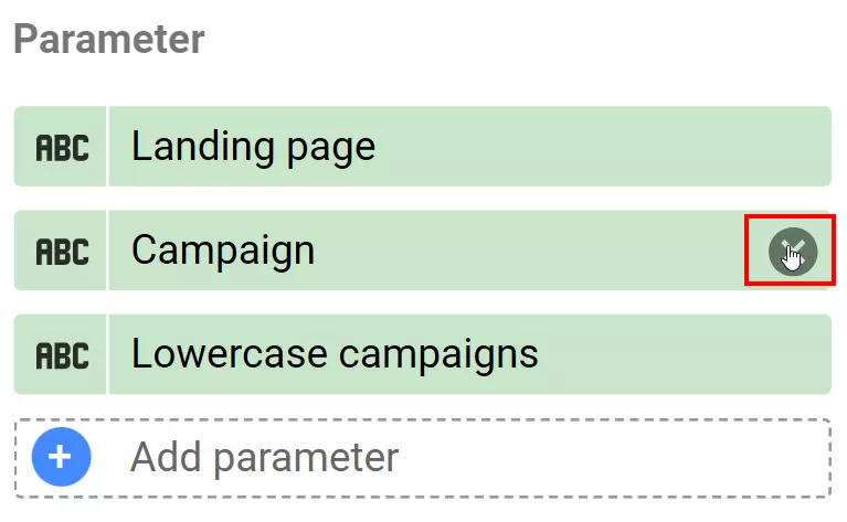 To avoid duplicate values, delete the Campaign parameter in the settings panel, leaving only the Campaigns in lowercase parameter.