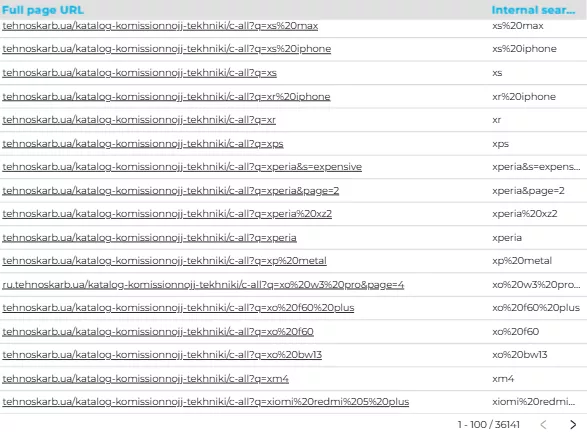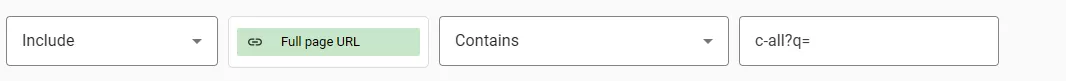 Let's look at an example where you need to analyze what users are searching for on the website using the internal search function. First, filter the data by the parameters in the URL of the internal search results pages. In our example, the parameter is ‘search=’. You can add the filter in the right panel of the table settings in the Data section. The filter settings will look like this: