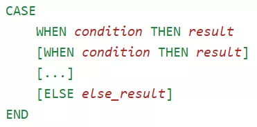 A CASE statement consists of one or more logical conditions (WHEN) followed by the result that is returned when the conditions are met (THEN). If the conditions are not met, the CASE statement returns the value specified in the ELSE clause.
