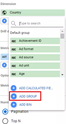 In the table settings panel, select Add dimension in the Properties block, then click Add calculated field.
