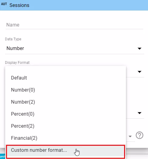 Additionally, you cannot apply custom formatting to values when creating or editing a calculated field in the data source.